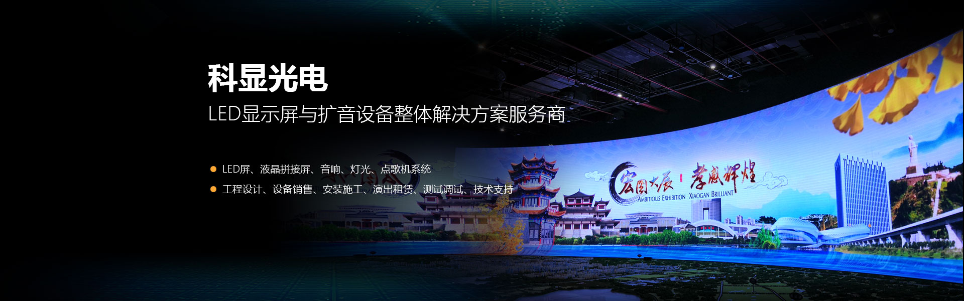 武漢科顯光電有限公司是一家集工程設(shè)計(jì)、設(shè)備銷(xiāo)售、安裝施工、演出租賃、測(cè)試調(diào)試、技術(shù)支持等多元化服務(wù)為一體的專(zhuān)業(yè)LED屏、液晶拼接屏、音響、燈光、點(diǎn)歌機(jī)系統(tǒng)集成服務(wù)商。在市政、交通運(yùn)輸、銀行證券、體育場(chǎng)館、商場(chǎng)、機(jī)場(chǎng)、車(chē)站、港口、醫(yī)院、院校、教育系統(tǒng)、工商、稅務(wù)、KTV等領(lǐng)域得到廣泛應(yīng)用。...
